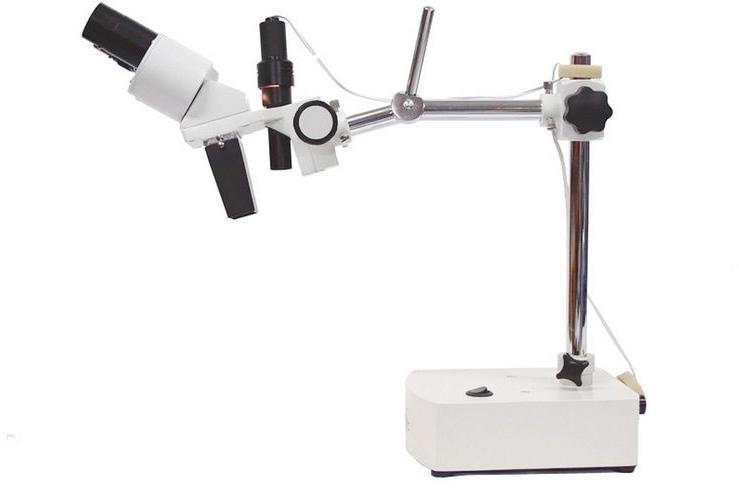IND-C2D Ipari sztereómikroszkóp 230 mm-es munkatávolsággal, 10x nagyítással, restaurátori munkákhoz.