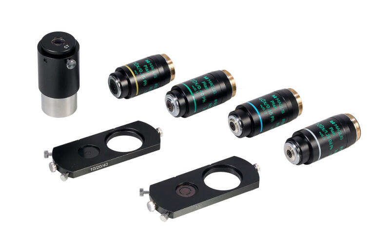 A MAGUS SPH2 fáziskontraszt eszköz fáziskontraszt-csúszkákból álló készletet, fázisobjektív-készletet és központosító teleszkópot tartalmaz. A fáziskontraszt eszköz olyan átlátszó, alacsony kontrasztú minták tanulmányozására szolgál, amelyek világos látótérben nem láthatók. A festés megöli az élő sejteket. A technika fő előnye az, hogy segítségével élő szervezetek tanulmányozhatók festetlen, természetes állapotukban. A technikát az orvostudományban, ökológiában, gyógyszerészetben, mezőgazdaságban és másutt is alkalmazzák. Fáziskontraszt-csúszká k A fáziskontraszt-csúszka a kondenzornyílásba kerül behelyezésre. A csúszka egy olyan lemez, amely két nyílással rendelkezik: az egyik szabad nyílás a világos látóterű megfigyelésekhez való, a másik nyílásban pedig az éppen használt objektívnek megfelelő fázisbetét van. A fáziskontraszt eszközhöz kétféle csúszka jár: az egyik a 10x, 20x és 40x objektívekkel működő betétet tartalmazza, a másik betét pedig a 100x objektívvel működik. A betét jelölése megfelel az éppen használt objektívnek. A csúszka segítségével könnyedén válthat a világos látóterű megfigyelésekről a fáziskontraszt-technikára, majd vissza. Sík-akromatikus fázisobjektívek A fázisobjektívek abban térnek el a szabványos objektívektől, hogy fázisgyűrűvel rendelkeznek a kilépő pupilla síkjában. A sík-akromatikus fázisobjektívek olyan képet alkotnak, amely azonos fókuszt biztosít a középpontban és a széleknél is, így a torzítás elenyésző. A kromatikus aberráció a kék és a piros, a szférikus aberráció a zöld esetében, a látómező görbülete pedig a látómező átmérőjének 90%-ában korrigálódik. A 10x objektív használható fedőlemezes vagy anélküli mintákhoz is. A 20x, 40x és 100x objektív 0,17 mm-es fedőlemezzel rendelkező minták megfigyelésére szolgál. A 100x objektív támogatja az olajimmerziós technikát. Az objektíveket végtelenre korrigált tubushosszúságra tervezték. A parfokális távolság 60 mm. Központosító teleszkóp A központosító teleszkóp használatával a csúszkák gyűrűs diafragmái az objektív fázisgyűrűihez igazíthatók. Kompatibilitás:
