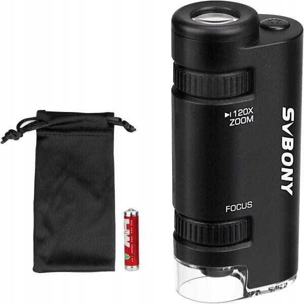 Svbony SV603 Zseb optikai mikroszkóp, 60X-120X LED-ekkel, Ajándék (F9367A)